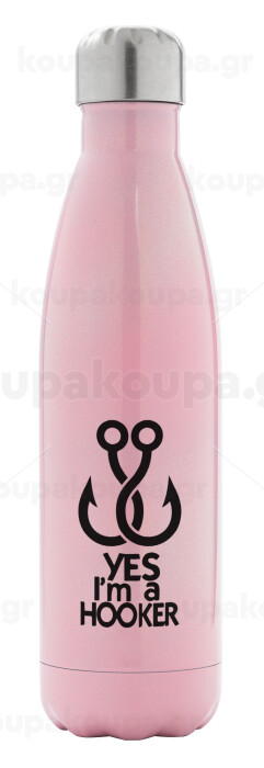 Yes i am Hooker, Metal mug thermos Pink Iridiscent (Stainless steel), double wall, 500ml