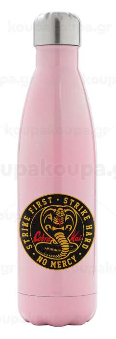 cobra kai strike first dojo, Metal mug thermos Pink Iridiscent (Stainless steel), double wall, 500ml