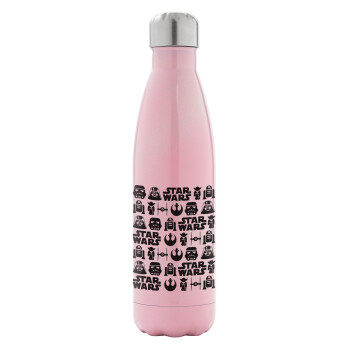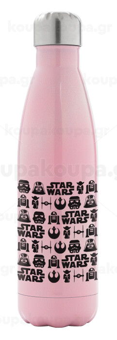 Star Wars Pattern, Metal mug thermos Pink Iridiscent (Stainless steel), double wall, 500ml