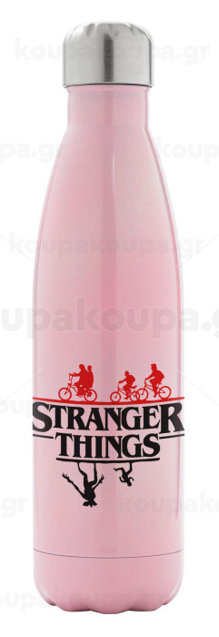 Stranger Things upside down, Metal mug thermos Pink Iridiscent (Stainless steel), double wall, 500ml