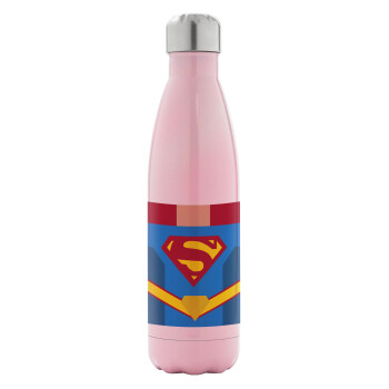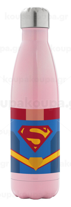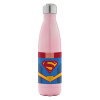 Superman flat, Metal mug thermos Pink Iridiscent (Stainless steel), double wall, 500ml