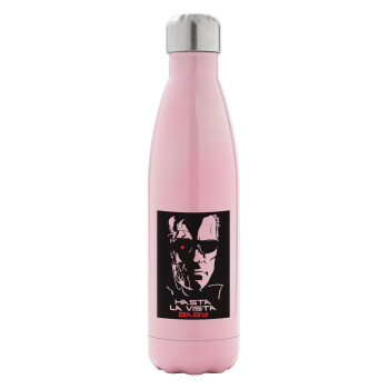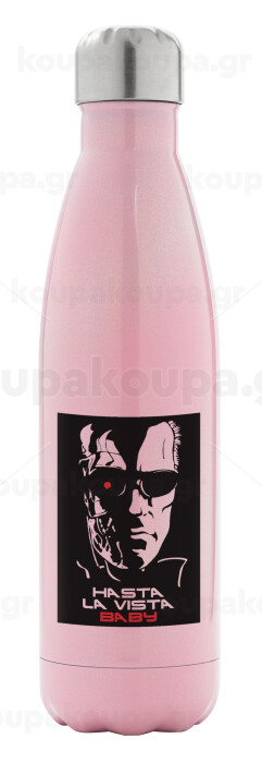 Terminator Hasta La Vista, Metal mug thermos Pink Iridiscent (Stainless steel), double wall, 500ml