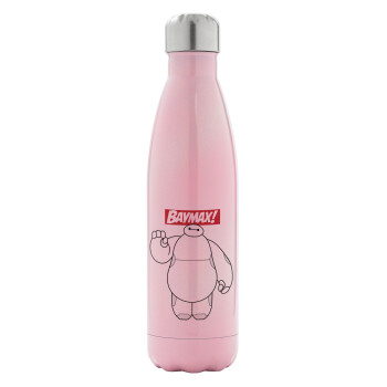 Baymax hi, Metal mug thermos Pink Iridiscent (Stainless steel), double wall, 500ml