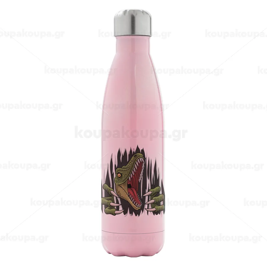 Dinosaur scratch, Metal mug thermos Pink Iridiscent (Stainless steel), double wall, 500ml