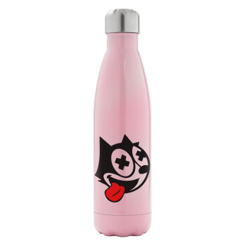 helix the cat, Metal mug thermos Pink Iridiscent (Stainless steel), double wall, 500ml