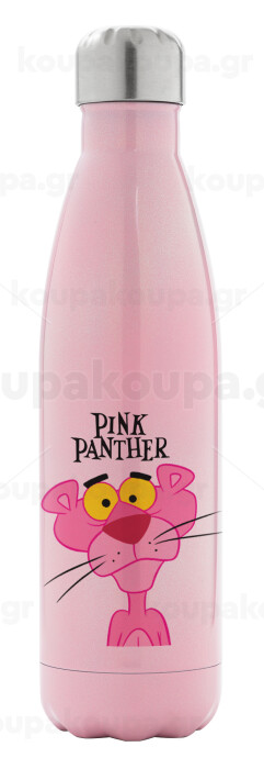 Pink Panther cartoon, Metal mug thermos Pink Iridiscent (Stainless steel), double wall, 500ml