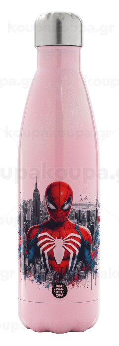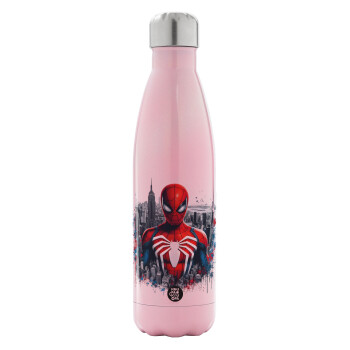 Spiderman City, Metal mug thermos Pink Iridiscent (Stainless steel), double wall, 500ml