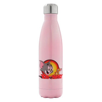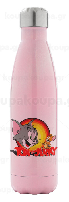 Tom and Jerry, Metal mug thermos Pink Iridiscent (Stainless steel), double wall, 500ml