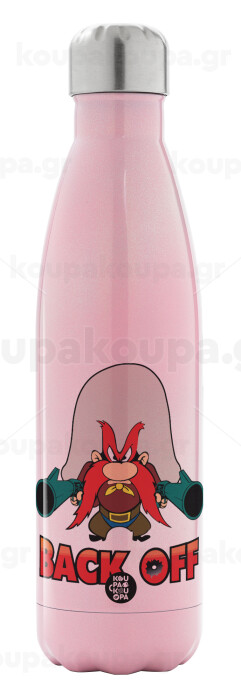 Yosemite Sam Back OFF, Metal mug thermos Pink Iridiscent (Stainless steel), double wall, 500ml