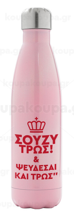Σούζυ και ψεύδεσαι και τρως, Metal mug thermos Pink Iridiscent (Stainless steel), double wall, 500ml