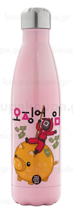 Squid game money pig, Metal mug thermos Pink Iridiscent (Stainless steel), double wall, 500ml