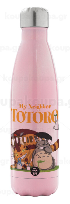Totoro and Cat, Metal mug thermos Pink Iridiscent (Stainless steel), double wall, 500ml