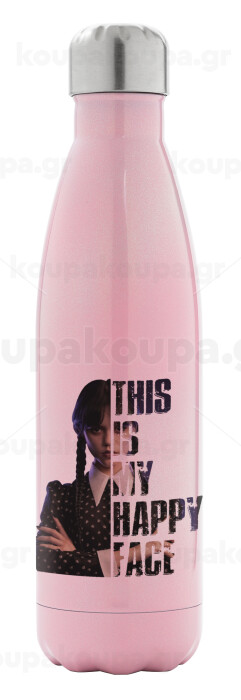 Wednesday, This is my happy face, Metal mug thermos Pink Iridiscent (Stainless steel), double wall, 500ml