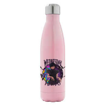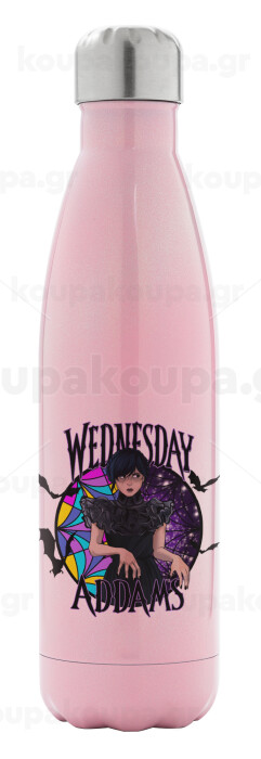 Wednesday Jenna Ortega, Metal mug thermos Pink Iridiscent (Stainless steel), double wall, 500ml