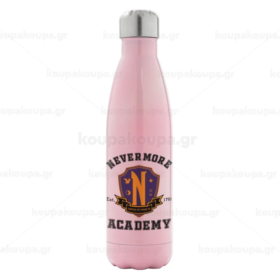 Wednesday Nevermore Academy University, Metal mug thermos Pink Iridiscent (Stainless steel), double wall, 500ml