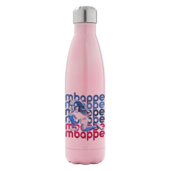 Kylian Mbappé, Metal mug thermos Pink Iridiscent (Stainless steel), double wall, 500ml