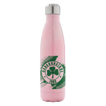Π.Α.Ο., Metal mug thermos Pink Iridiscent (Stainless steel), double wall, 500ml