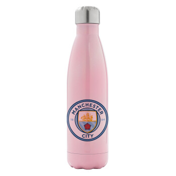 Manchester City FC , Metal mug thermos Pink Iridiscent (Stainless steel), double wall, 500ml