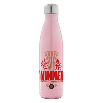 Europa Conference League WINNER, Metal mug thermos Pink Iridiscent (Stainless steel), double wall, 500ml