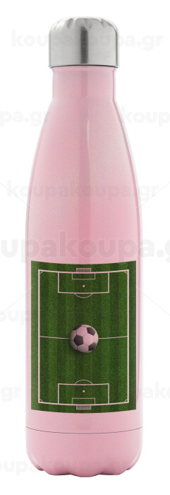 Soccer field, Γήπεδο ποδοσφαίρου, Metal mug thermos Pink Iridiscent (Stainless steel), double wall, 500ml