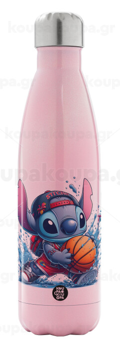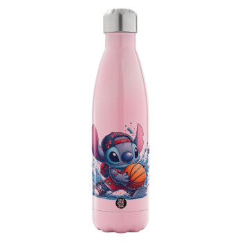 Stitch Basketball, Metal mug thermos Pink Iridiscent (Stainless steel), double wall, 500ml