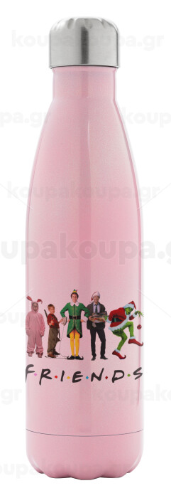 Christmas FRIENDS, Metal mug thermos Pink Iridiscent (Stainless steel), double wall, 500ml