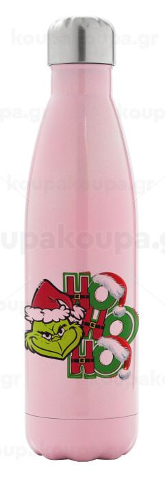 Grinch ho ho ho, Metal mug thermos Pink Iridiscent (Stainless steel), double wall, 500ml