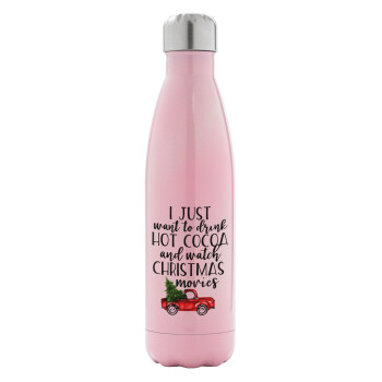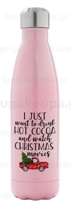 I just want to drink hot cocoa and watch christmas movies pickup car, Metal mug thermos Pink Iridiscent (Stainless steel), double wall, 500ml