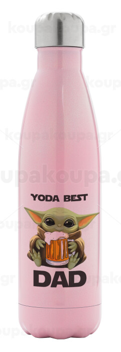 Yoda Best Dad, Metal mug thermos Pink Iridiscent (Stainless steel), double wall, 500ml