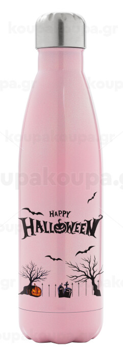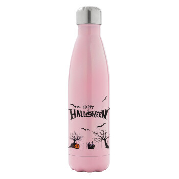 Happy Halloween cemetery, Metal mug thermos Pink Iridiscent (Stainless steel), double wall, 500ml