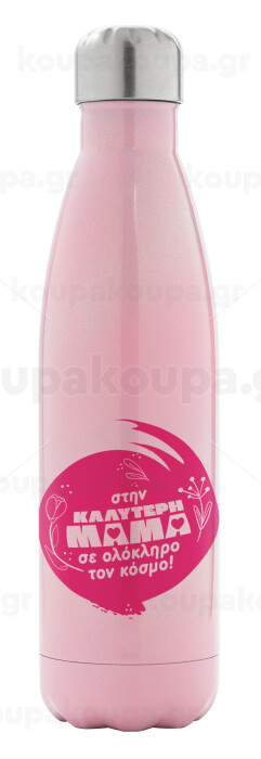 Στην καλύτερη μαμά του κόσμου!, Metal mug thermos Pink Iridiscent (Stainless steel), double wall, 500ml