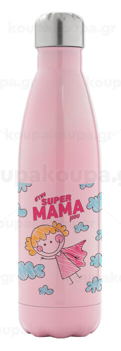 Στην SUPER μαμά μου, comic, Metal mug thermos Pink Iridiscent (Stainless steel), double wall, 500ml