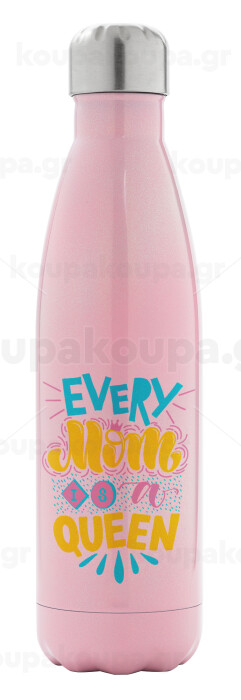 Every mom is a Queen, Metal mug thermos Pink Iridiscent (Stainless steel), double wall, 500ml