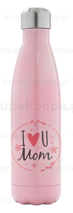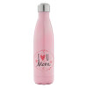 I Love you Mom pink, Metal mug thermos Pink Iridiscent (Stainless steel), double wall, 500ml