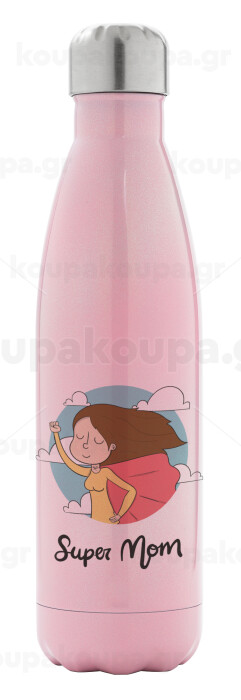 Super mom, Metal mug thermos Pink Iridiscent (Stainless steel), double wall, 500ml