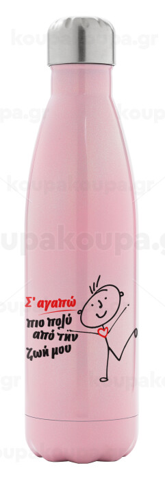 Σ'αγαπώ πιο πολύ από την ζωή μου!!!, Metal mug thermos Pink Iridiscent (Stainless steel), double wall, 500ml