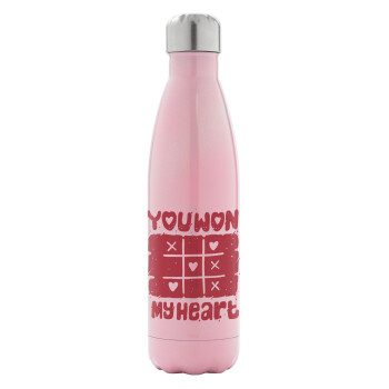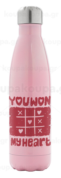 Τρίλιζα you won my heart, Metal mug thermos Pink Iridiscent (Stainless steel), double wall, 500ml