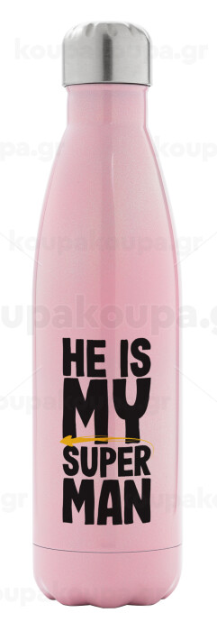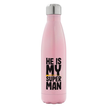 He is my superman, Metal mug thermos Pink Iridiscent (Stainless steel), double wall, 500ml