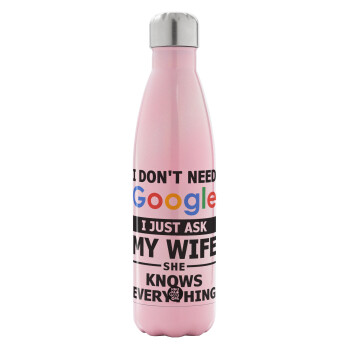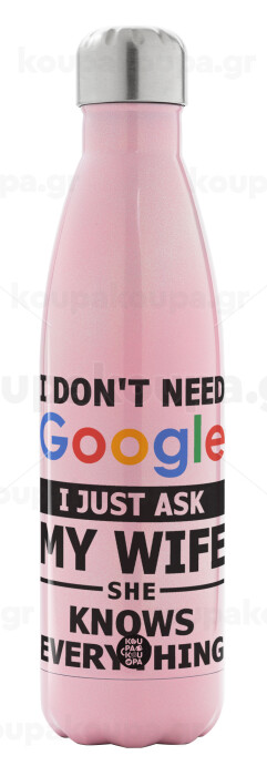 I don't need Google, just ask my WIFE, Metal mug thermos Pink Iridiscent (Stainless steel), double wall, 500ml