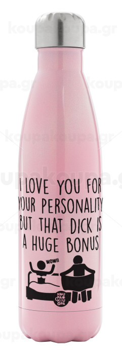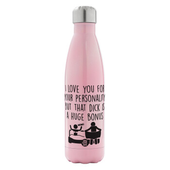 I Love You for Your Personality But that D... Is a Huge Bonus , Metal mug thermos Pink Iridiscent (Stainless steel), double wall, 500ml