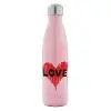 I Love You red heart, Metal mug thermos Pink Iridiscent (Stainless steel), double wall, 500ml