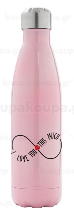 I Love you thisssss much (infinity), Metal mug thermos Pink Iridiscent (Stainless steel), double wall, 500ml