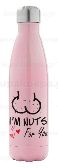 I'm Nuts for you, Metal mug thermos Pink Iridiscent (Stainless steel), double wall, 500ml
