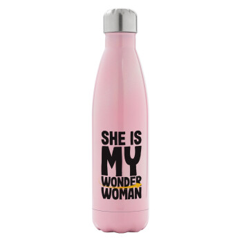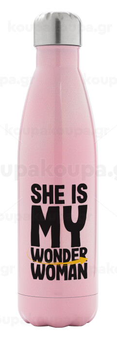 She is my wonder woman, Metal mug thermos Pink Iridiscent (Stainless steel), double wall, 500ml