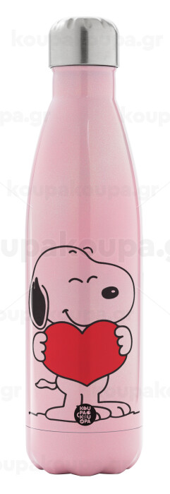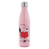 Snoopy takemy heart, Metal mug thermos Pink Iridiscent (Stainless steel), double wall, 500ml