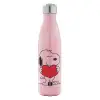 Snoopy takemy heart, Metal mug thermos Pink Iridiscent (Stainless steel), double wall, 500ml