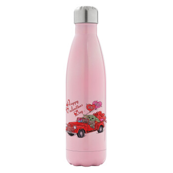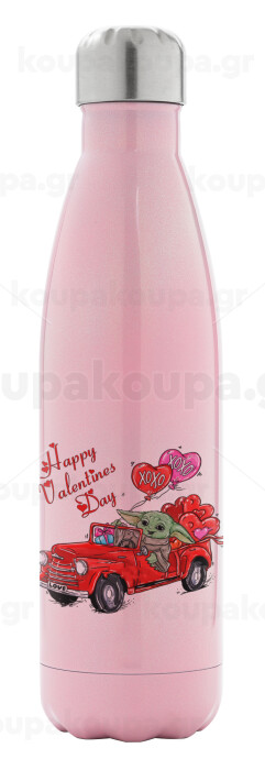 Yoda, happy valentines day (xoxo), Metal mug thermos Pink Iridiscent (Stainless steel), double wall, 500ml