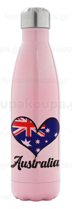 Australia flag, Metal mug thermos Pink Iridiscent (Stainless steel), double wall, 500ml