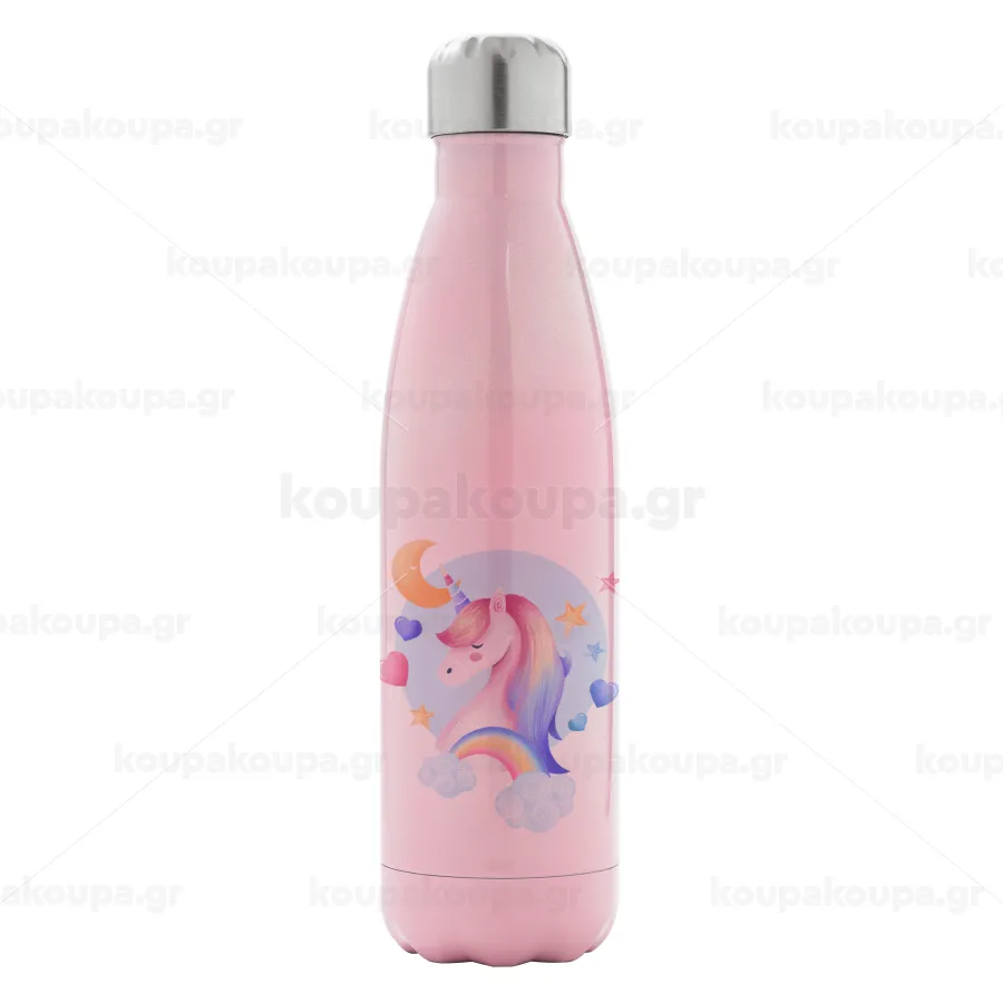 Cute unicorn, Metal mug thermos Pink Iridiscent (Stainless steel), double wall, 500ml