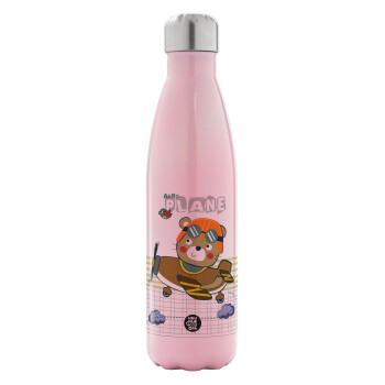 Kids Plane, Metal mug thermos Pink Iridiscent (Stainless steel), double wall, 500ml